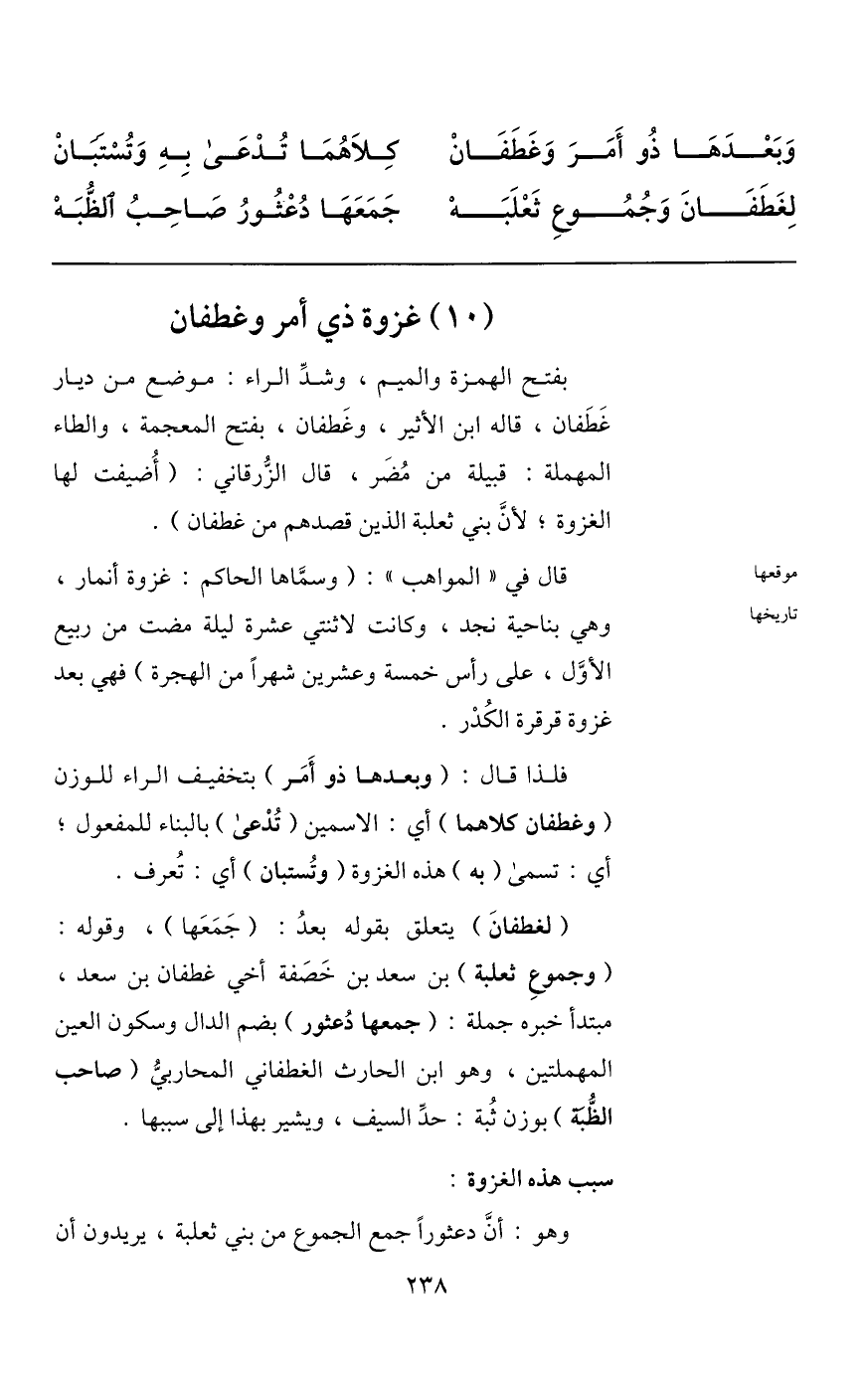 فلذا قال: (وبعدها ذو أمر) بتخفيف الراء للوزن (وغطفان كلاهما) أي: الاسمين (تدعى) بالبناء للمفعول؛ أي: تسمى (به) هذه الغزوة (وتستبان) أي: تعرف.