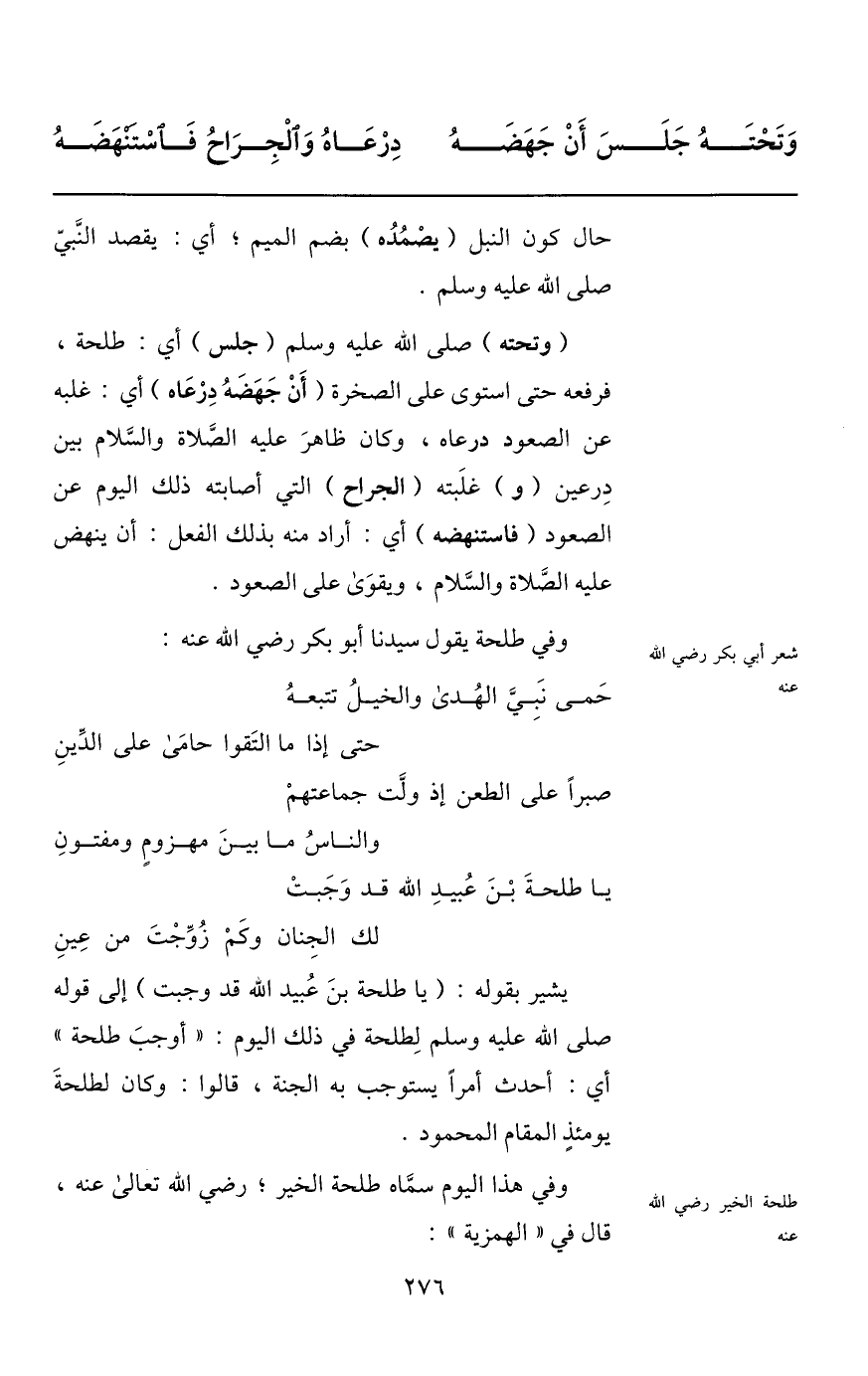 وفي هذا اليوم سمّاه طلحة الخير؛ رضي الله تعالى عنه، قال في «الهمزية» :