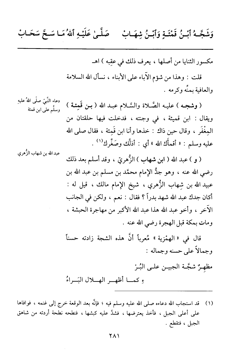 وشجّه ابن قمئة وابن شهاب ... صلّى عليه الله ما سحّ سحاب