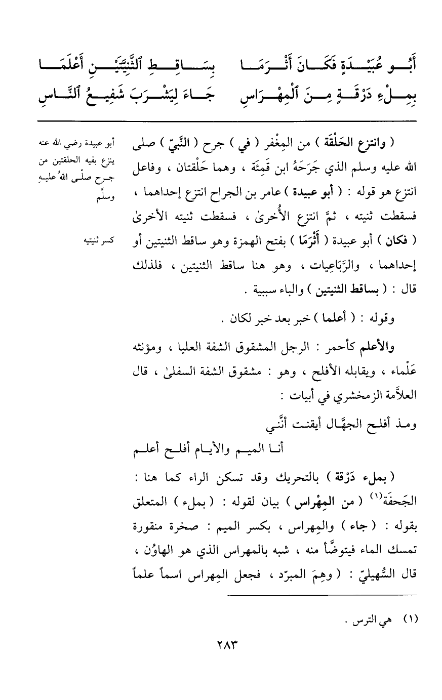 أبو عبيدة فكان أثر ما ... بساقط الثّنيّتين أعلما