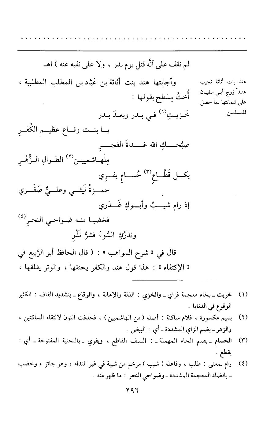 خزيت «1» في بدر وبعد بدر ... يا بنت وقاع عظيم الكفر