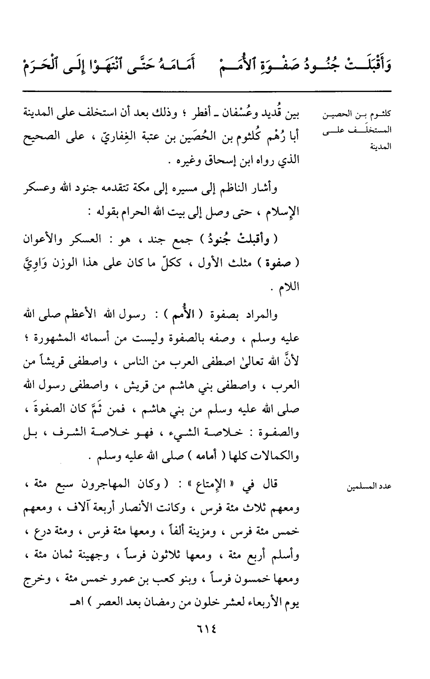 وأقبلت جنود صفوة الأمم ... أمامه حتّى انتهوا إلى الحرم