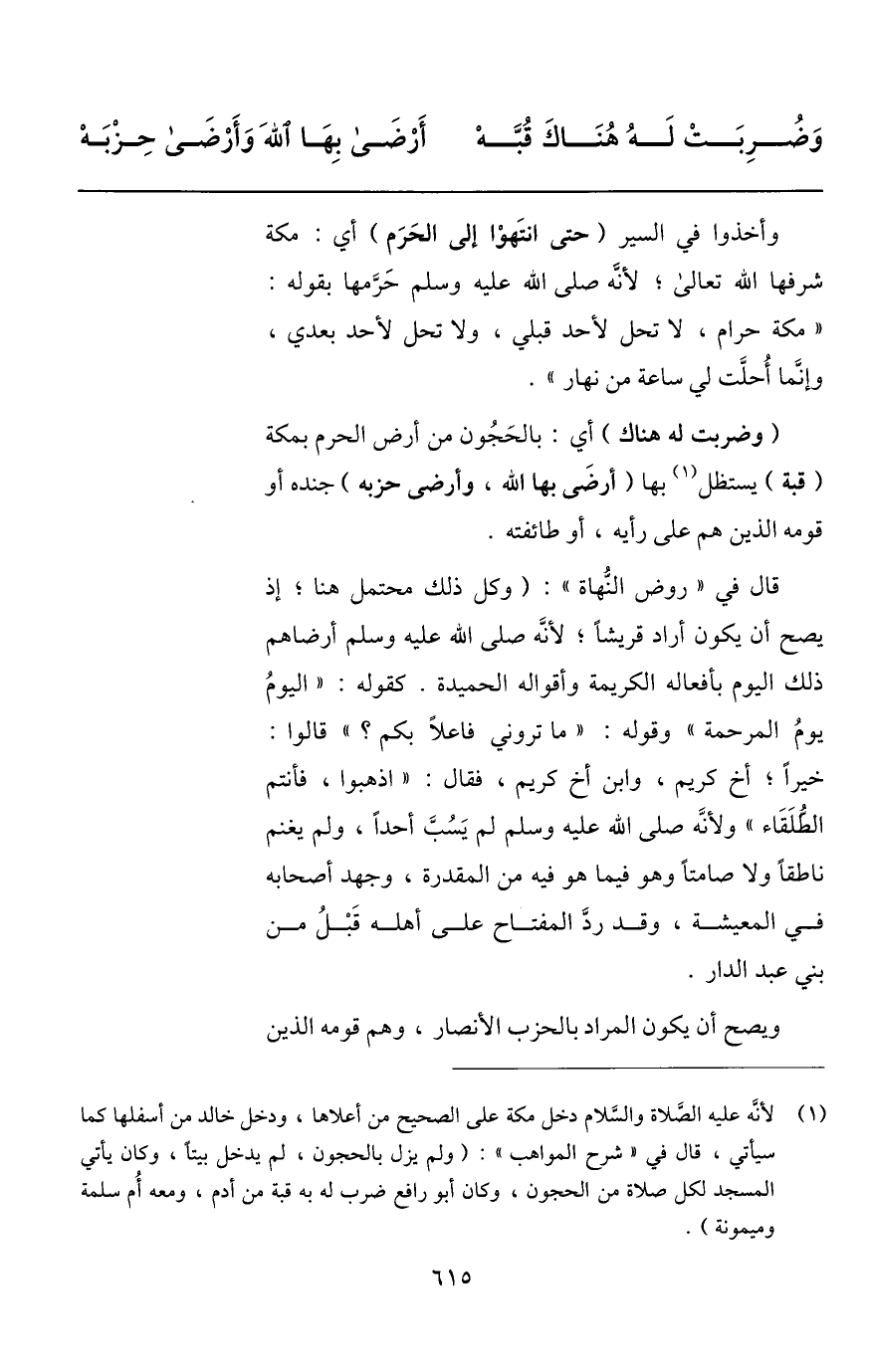 (وضربت له هناك) أي: بالحجون من أرض الحرم بمكة (قبة) يستظل «1» بها (أرضى بها الله، وأرضى حزبه) جنده أو قومه الذين هم على رأيه، أو طائفته.