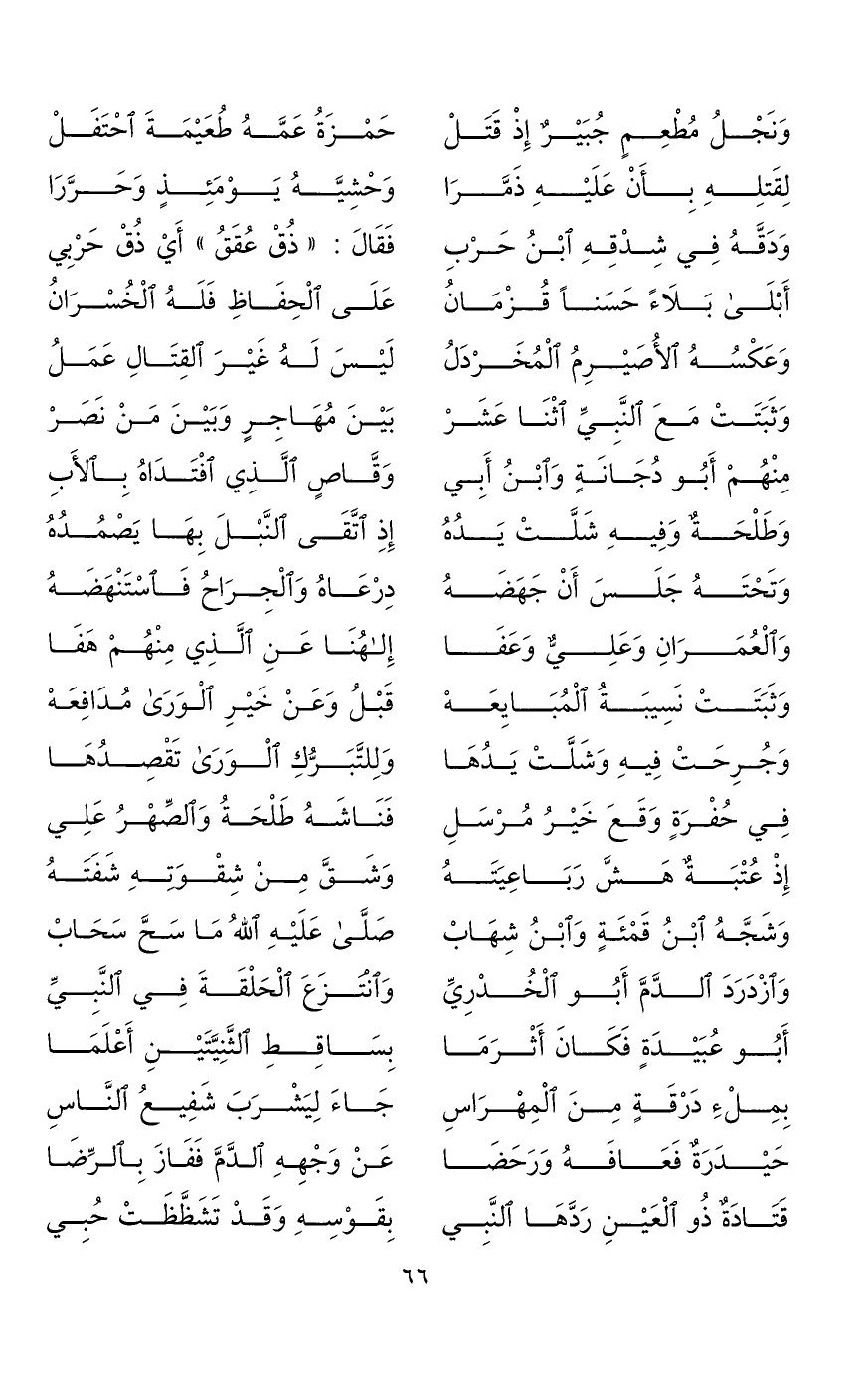 وشجّه ابن قمئة وابن شهاب ... صلّى عليه الله ما سحّ سحاب