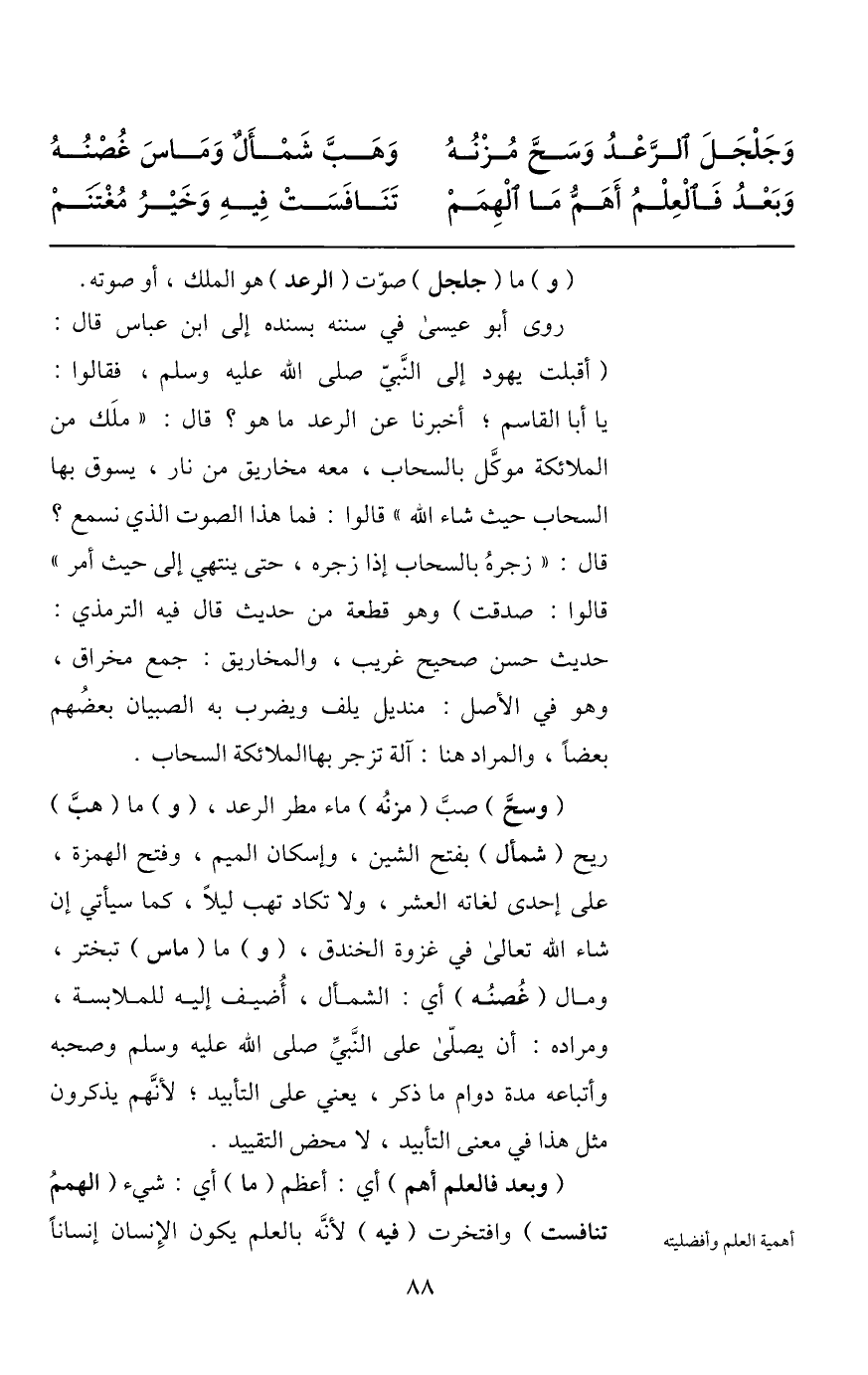 قال: «زجره بالسحاب إذا زجره، حتى ينتهي إلى حيث أمر» قالوا: صدقت) وهو قطعة من حديث قال فيه الترمذي: