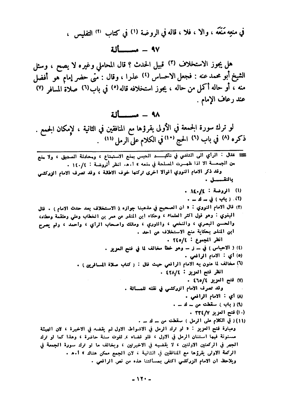 هَل يجوز الِاسْتِخْلَاف قبيل الْحَدث قَالَ الْمحَامِلِي وَغَيره لَا يَصح وَسُئِلَ الشَّيْخ أَبُو مُحَمَّد عَنهُ فَجعل الإحساس عذرا وَقَالَ مَتى حضر إِمَام هُوَ أفضل مِنْهُ أَو حَاله أكمل من حَاله يجوز استخلافه قَالَه فِي بَاب صَلَاة الْمُسَافِر عِنْد رُعَاف الإِمَام