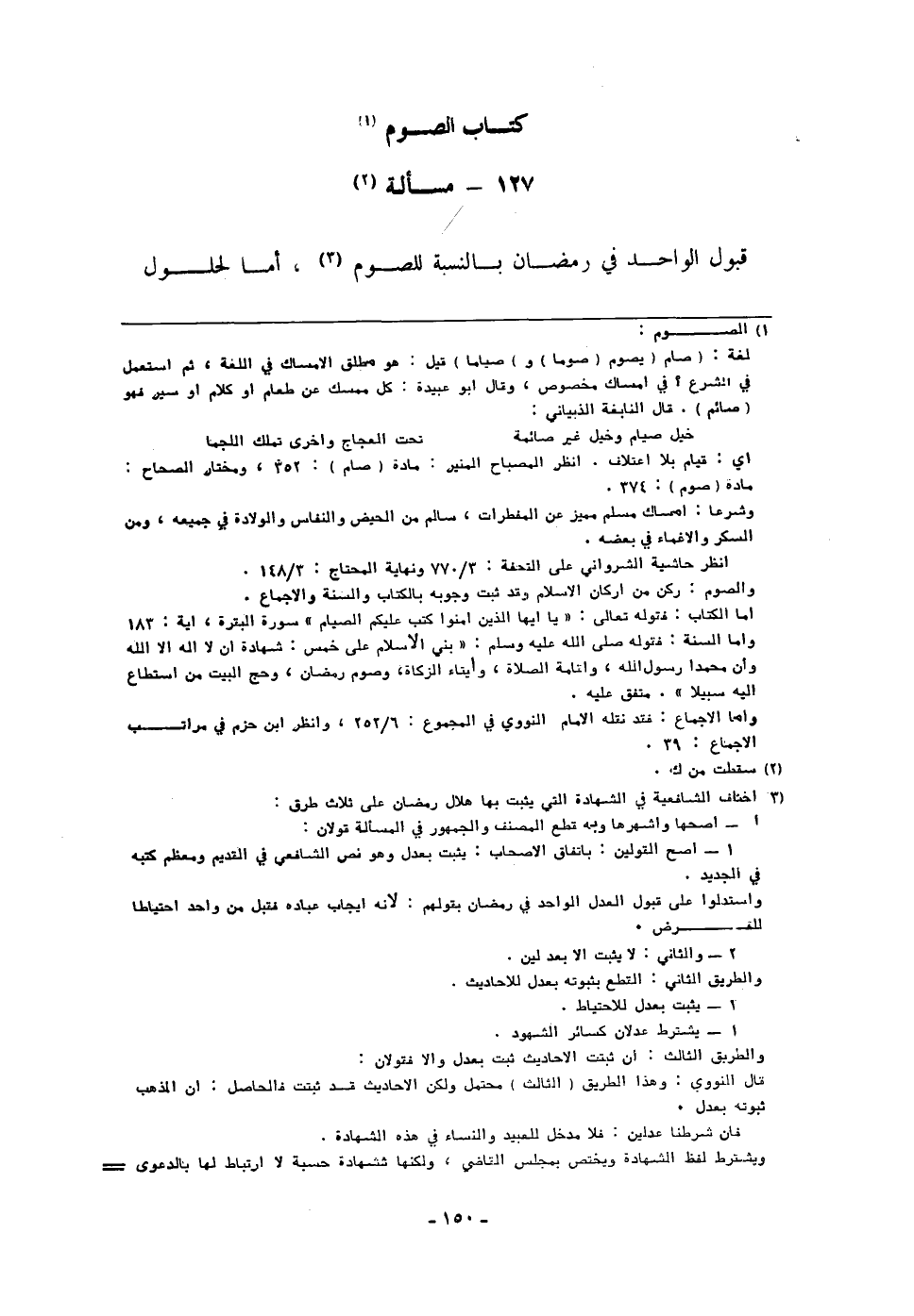 قبُول الْوَاحِد فِي رَمَضَان بِالنِّسْبَةِ للصَّوْم أما لحلول