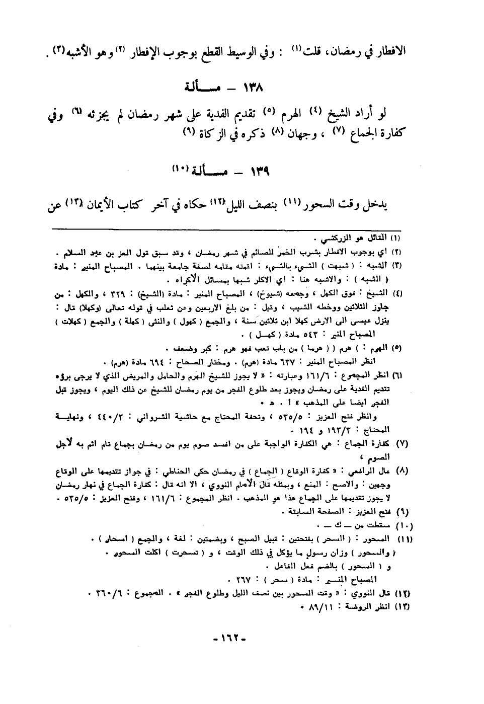 الْإِفْطَار فِي رَمَضَان قلت وَفِي الْوَسِيط الْقطع بِوُجُوب الْإِفْطَار وَهُوَ الْأَشْبَه