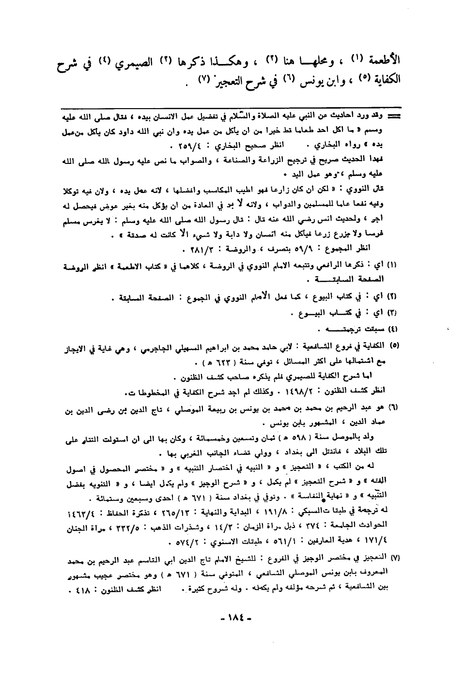 الْأَطْعِمَة ومحلها هُنَا وَهَكَذَا ذكرهَا الصَّيْمَرِيّ فِي شرح الْكِفَايَة وَابْن يُونُس فِي شرح التَّعْجِيز