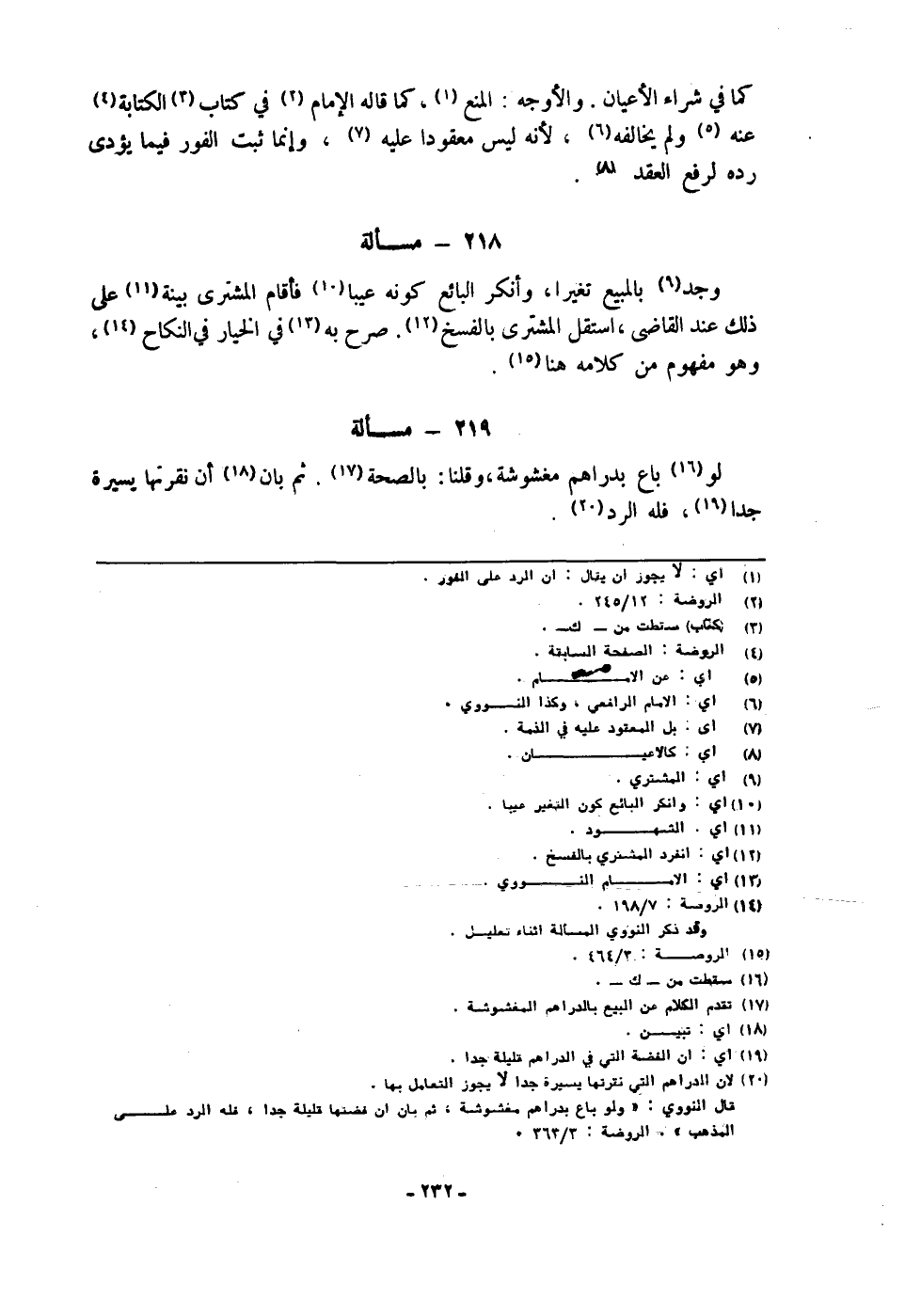 كَمَا فِي شِرَاء الْأَعْيَان وَالْأَوْجه الْمَنْع كَمَا قَالَه الإِمَام فِي كتاب الْكِتَابَة عَنهُ وَلم يُخَالِفهُ لِأَنَّهُ لَيْسَ معقودا عَلَيْهِ وَإِنَّمَا ثَبت الْفَوْر فِيمَا يُؤَدِّي رده لرفع العقد