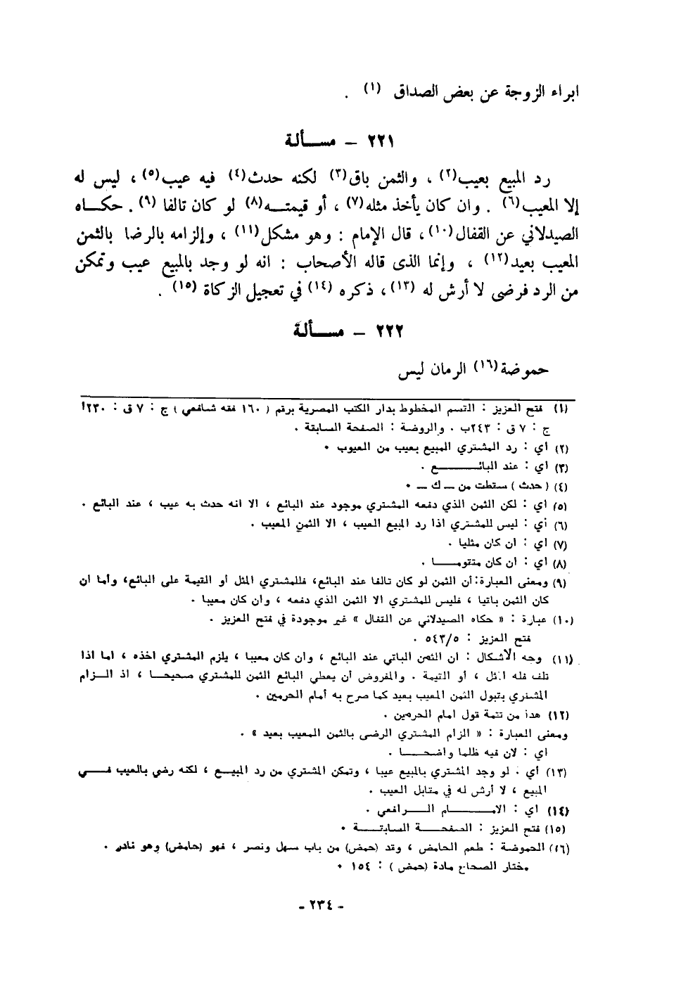 رد الْمَبِيع بِعَيْب وَالثمن بَاقٍ لكنه حدث فِيهِ عيب لَيْسَ لَهُ إِلَّا الْمَعِيب وَإِن كَانَ يَأْخُذ مثله أَو قِيمَته لَو كَانَ تَالِفا حَكَاهُ الصيدلاني عَن الْقفال قَالَ الإِمَام وَهُوَ مُشكل وإلزامه بِالرِّضَا بلثمن الْمَعِيب بَعيدا وَإِنَّمَا الَّذِي قَالَه الْأَصْحَاب إِنَّه لَو وجد بِالْمَبِيعِ عيب وَتمكن من الرَّد فرضى لَا أرش لَهُ ذكره فِي تَعْجِيل الزَّكَاة