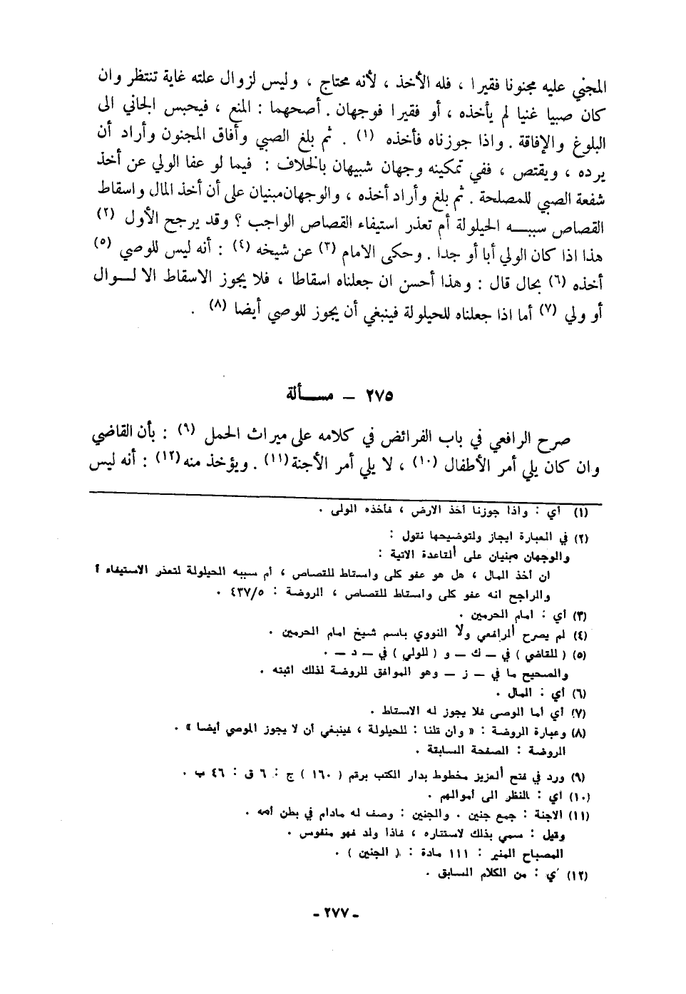 صرح الرَّافِعِيّ فِي بَاب الْفَرَائِض فِي كَلَامه على مِيرَاث الْحمل بِأَن القَاضِي وَا ن كَانَ يَلِي أَمر الْأَطْفَال لَا يَلِي أَمر الأجنة وَيُؤْخَذ مِنْهُ أَنه لَيْسَ