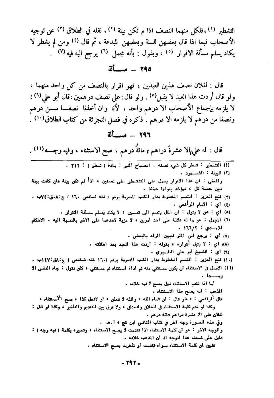قَالَ لفُلَان نصف هذيه الْعَبْدَيْنِ فَهُوَ إِقْرَار بِالنِّصْفِ من كل وَاحِد مِنْهُمَا وَلَو قَالَ أردْت هَذَا العَبْد لَا يقبل وَلَو قَالَ عَليّ نصف دِرْهَمَيْنِ قَالَ أَبُو عَليّ لَا يلْزمه باجماع الْأَصْحَاب إِلَّا دِرْهَم وَاحِد لأَنا وَإِن أَخذنَا نصفا من دِرْهَم وتصفا من دِرْهَم لَا يلْزمه إِلَّا دِرْهَم ذكره فِي فصل التجزئة من كتاب الطَّلَاق
