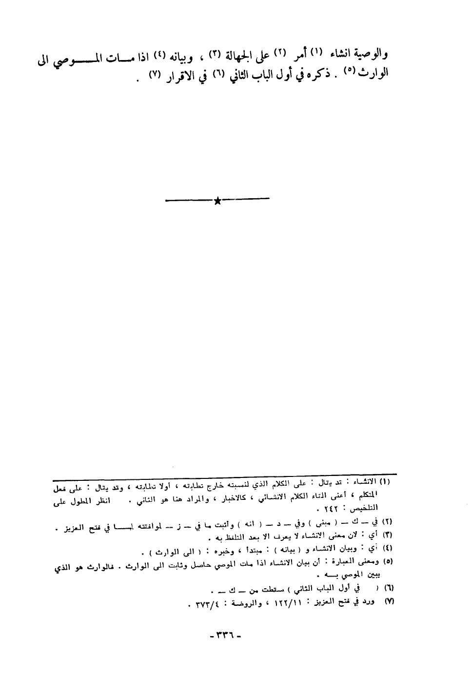 وَالْوَصِيَّة إنْشَاء أَمر على الْجَهَالَة وَبَيَانه إِذا مَاتَ الْمُوصي الى الْوَارِث ذكره فِي أول الْبَاب الثَّانِي فِي الْإِقْرَار