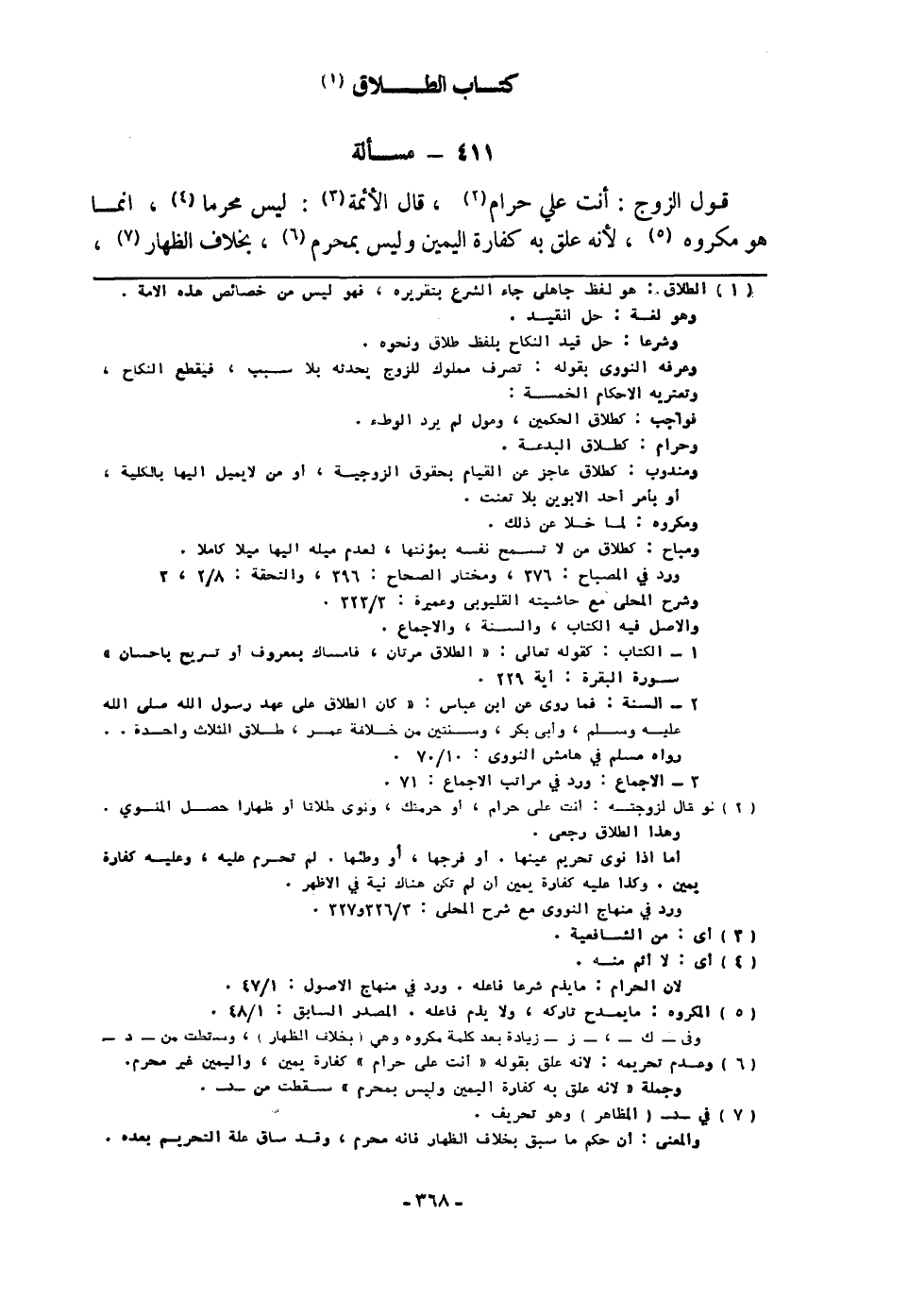 قَول الزَّوْج أَنْت عَليّ حرَام قَالَ الْأَئِمَّة لَيْسَ محرما إِنَّمَا هُوَ مَكْرُوه لِأَنَّهُ علق بِهِ كَفَّارَة الْيَمين وَلَيْسَ بِمحرم بِخِلَاف الظِّهَار