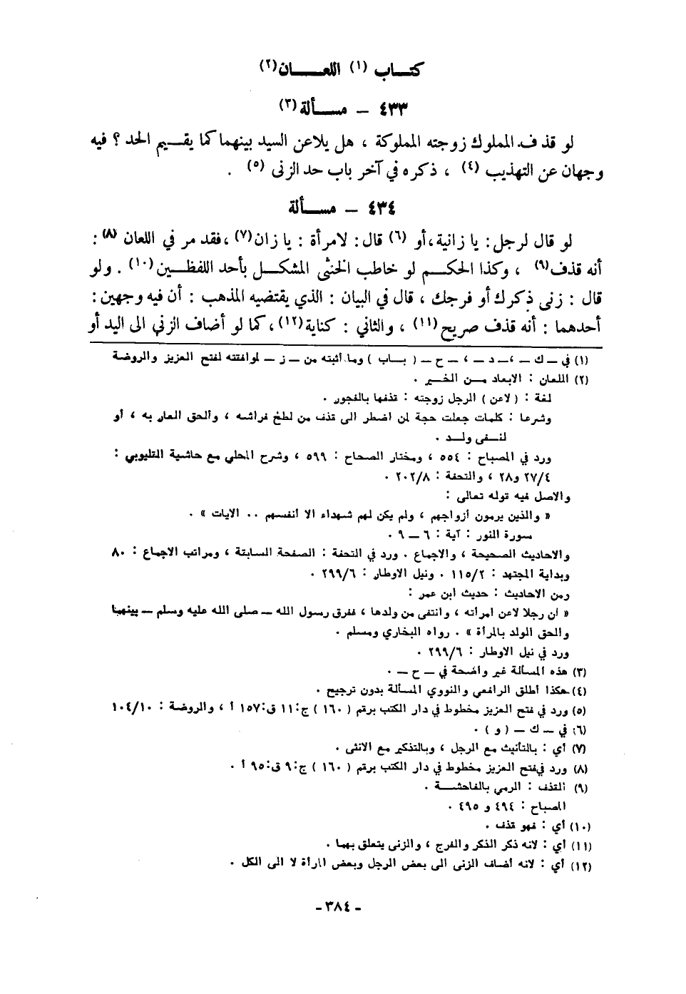 لَو قَالَ لرجل يَا زَانِيَة أَو قَالَ لأمرأة يَا زَان فقد مر فِي اللّعان أَنه قذف وَكَذَا الحكم لَو خَاطب الْخُنْثَى الْمُشكل بِأحد اللَّفْظَيْنِ وَلَو قَالَ زنى ذكرك أَو فرجك قَالَ فِي الْبَيَان الَّذِي يَقْتَضِيهِ الْمَذْهَب أَن فِيهِ وَجْهَيْن أَحدهمَا أَنه قذف صَرِيح وَالثَّانِي كِنَايَة كَمَا لَو أضَاف الزِّنَى إِلَى الْيَد أَو