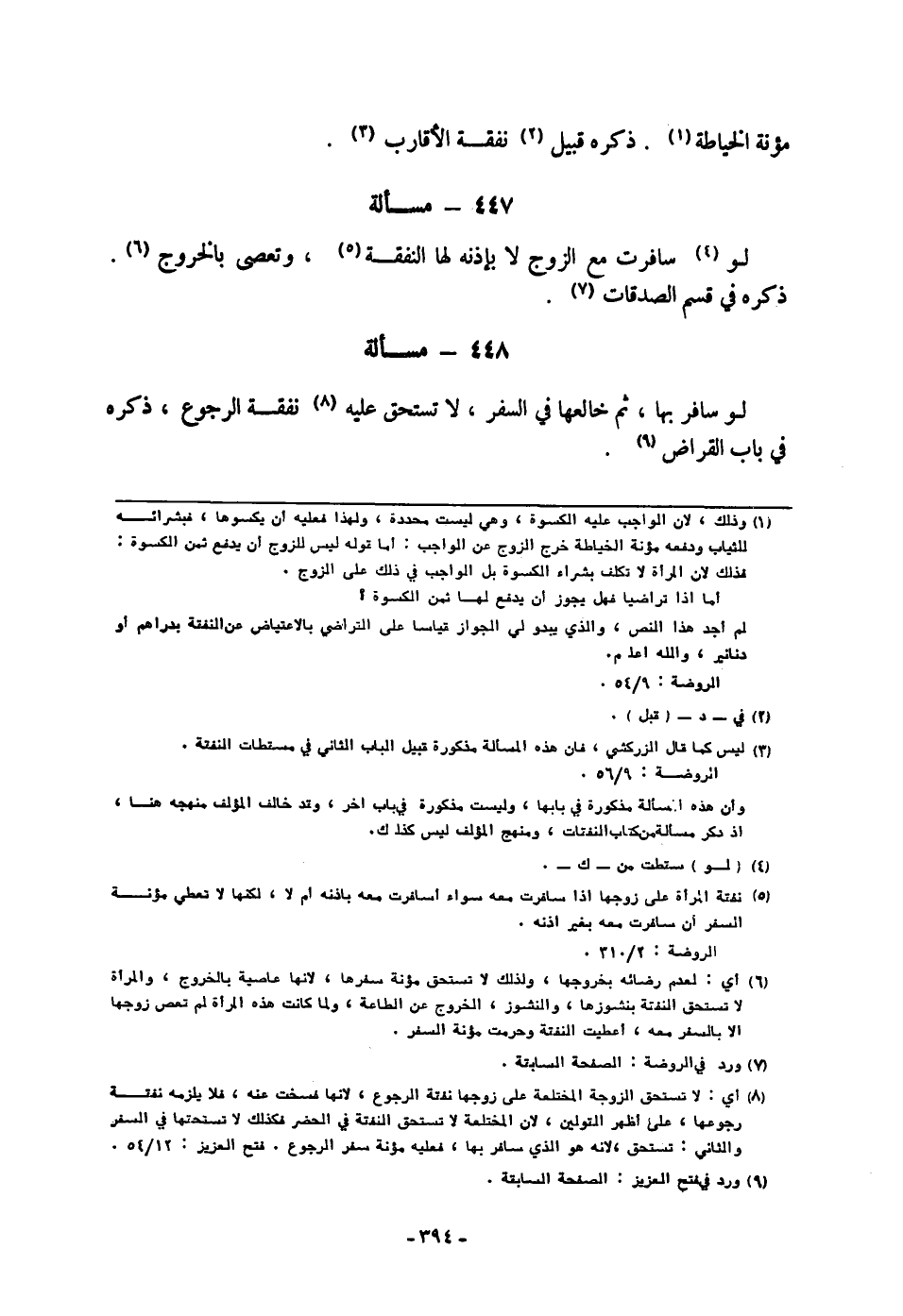مُؤنَة الْخياطَة ذكره قبيل نَفَقَة الْأَقَارِب