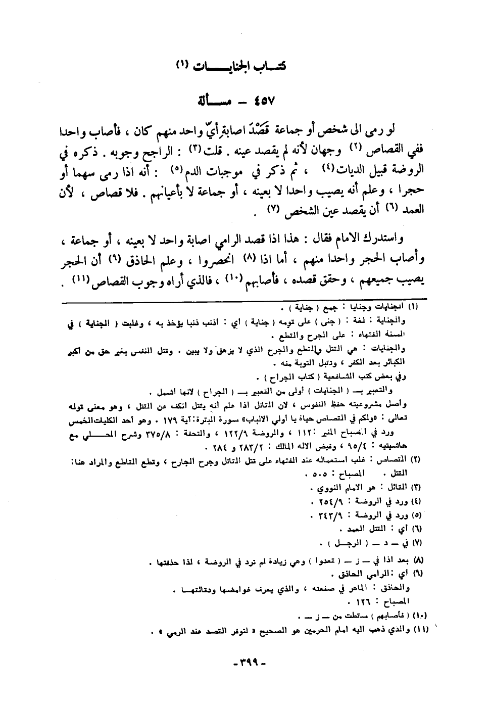 واستدرك الإِمَام فَقَالَ هَذَا إِذا قصد الرَّامِي إِصَابَة وَاحِدَة لَا بِعَيْنِه أَو جمَاعَة وَأصَاب الْحجر وَاحِدًا مِنْهُم أما إِذا انحصروا وَعلم الحاذق أَن الْحجر يُصِيب جَمِيعهم وحقق قَصده فَأَصَابَهُمْ فَالَّذِي أرَاهُ وجوب الْقصاص