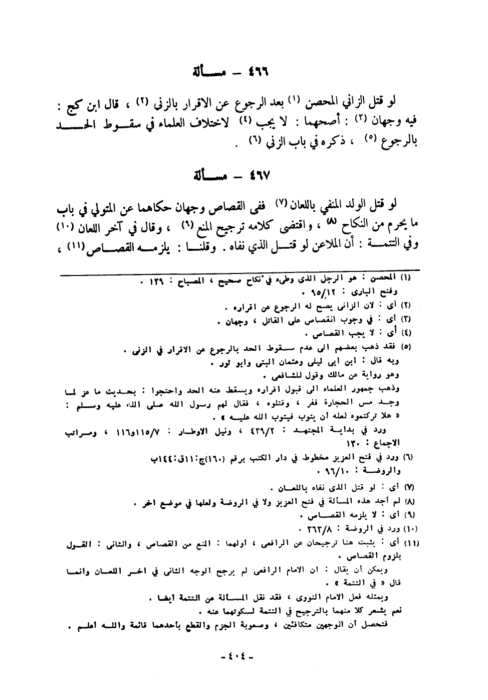 لَو قتل الزَّانِي الْمُحصن بعد الرُّجُوع عَن الْإِقْرَار بالزنى قَالَ ابْن كج فِيهِ وَجْهَان أصَحهمَا لَا يجب لاخْتِلَاف الْعلمَاء فِي سُقُوط الْحَد بِالرُّجُوعِ ذكره فِي بَاب الزِّنَى