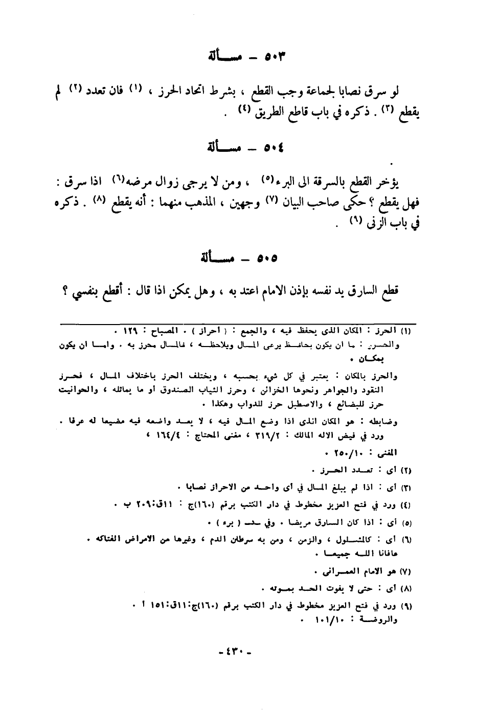 قطع السَّارِق يَد نَفسه بِإِذن الإِمَام واعتد بِهِ وَهل يُمكن إِذا قَالَ أقطع بنفسي