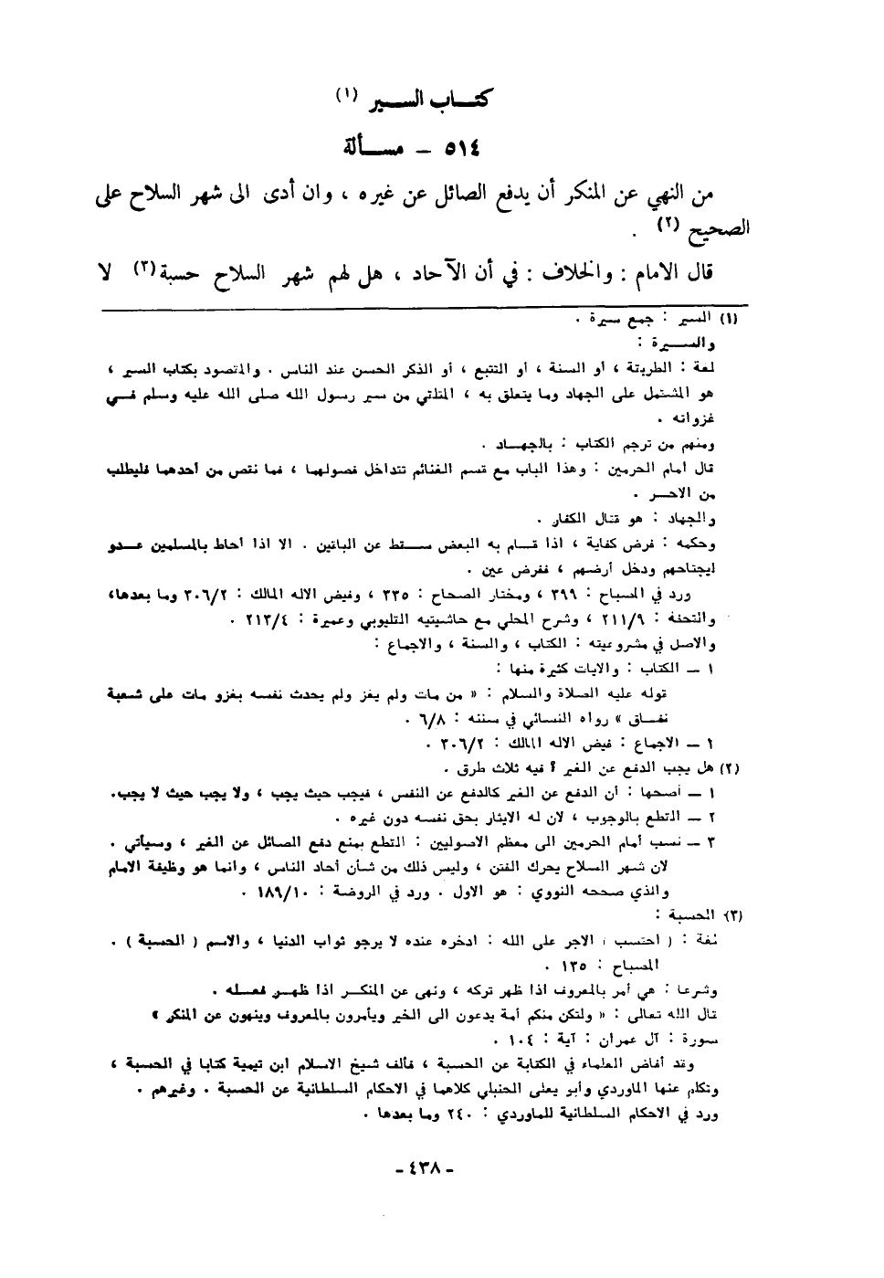 من النَّهْي عَن الْمُنكر أَن يدْفع الصَّائِل عَن غَيره وَإِن أدّى إِلَى شهر السِّلَاح على الصَّحِيح