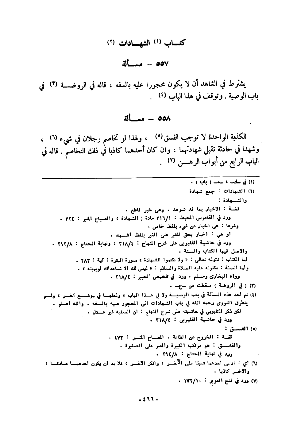 يشْتَرط فِي الشَّاهِد أَن لَا يكون مَحْجُورا عَلَيْهِ بالسفه قَالَه فِي الرَّوْضَة فِي بَاب الْوَصِيَّة وَتوقف فِي هَذَا الْبَاب