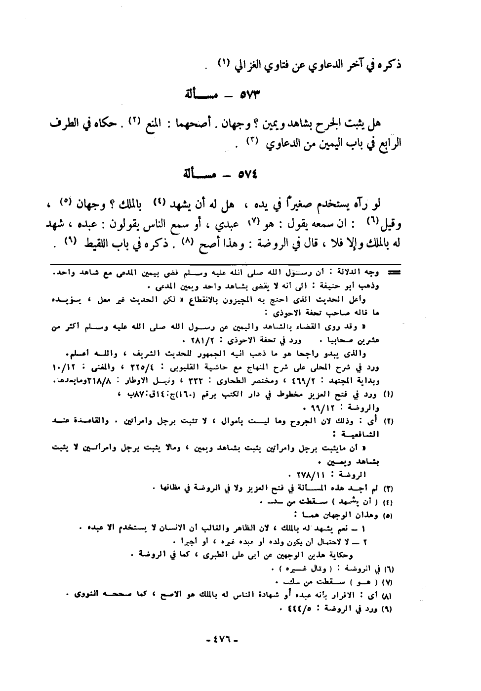 ذكره فِي آخر الدعاوي عَن فتاوي الْغَزالِيّ