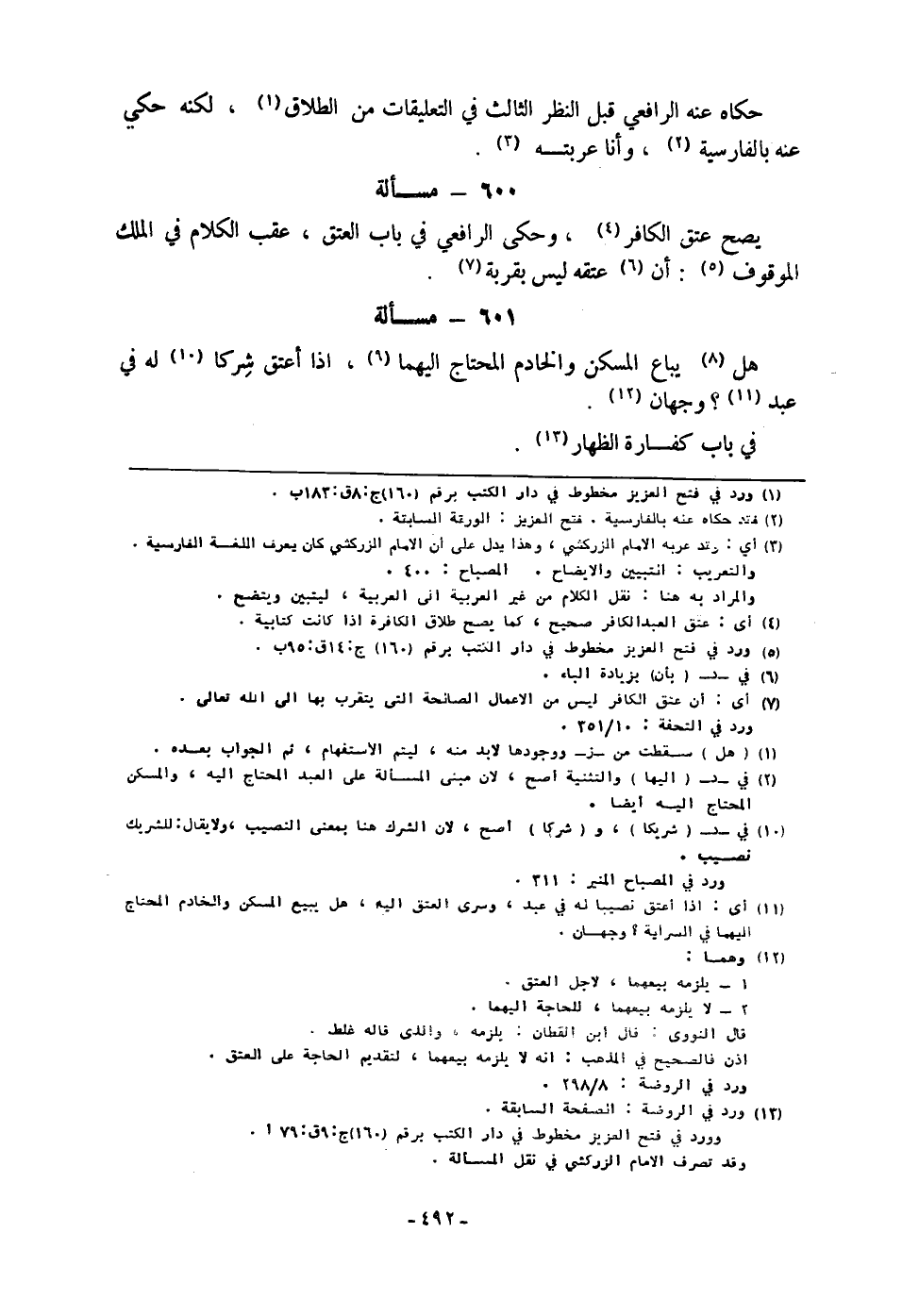حَكَاهُ عَنهُ الرَّافِعِيّ قبل النّظر الثَّالِث فِي التعليقات من الطَّلَاق لكنه حكى عَنهُ بِالْفَارِسِيَّةِ وَأَنا عربته