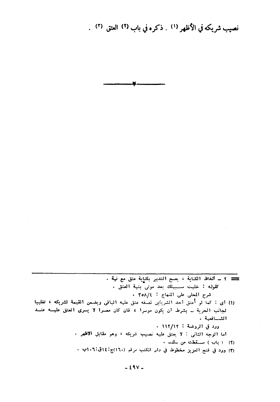 نصيب شَرِيكه فِي الْأَظْهر ذكره فِي بَاب الْعتْق