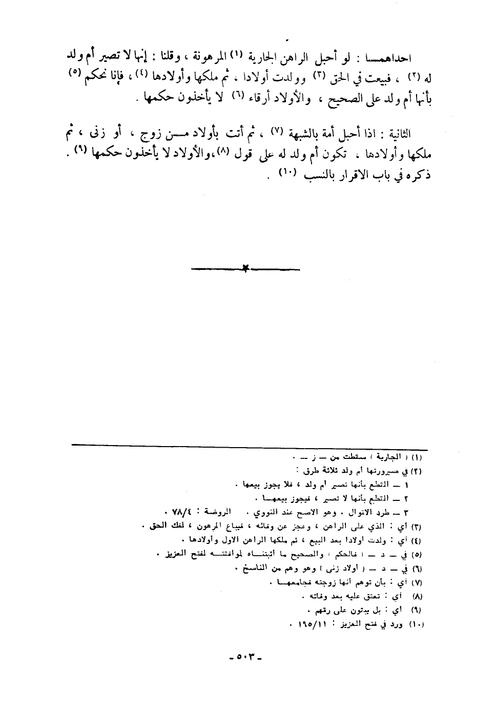 أَحدهمَا لَو أحبل الرَّاهِن الْجَارِيَة الْمَرْهُونَة وَقُلْنَا أَنَّهَا لَا تصير أم ولد لَهُ فبيعت فِي الْحق وَولدت أَوْلَادًا ثمَّ ملكهَا وَأَوْلَادهَا فَإنَّا نحكم بِأَنَّهَا أم ولد على الصَّحِيح وَالْأَوْلَاد أرقاء لَا يَأْخُذُونَ حكمهَا