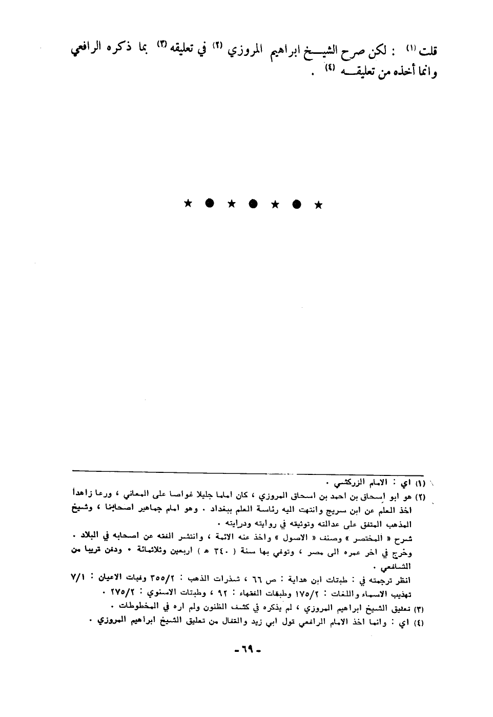 قلت لَكِن صرح الشَّيْخ ابراهيم الْمروزِي فِي تَعْلِيقه بِمَا ذكره الرَّافِعِيّ وانما أَخذه من تَعْلِيقه