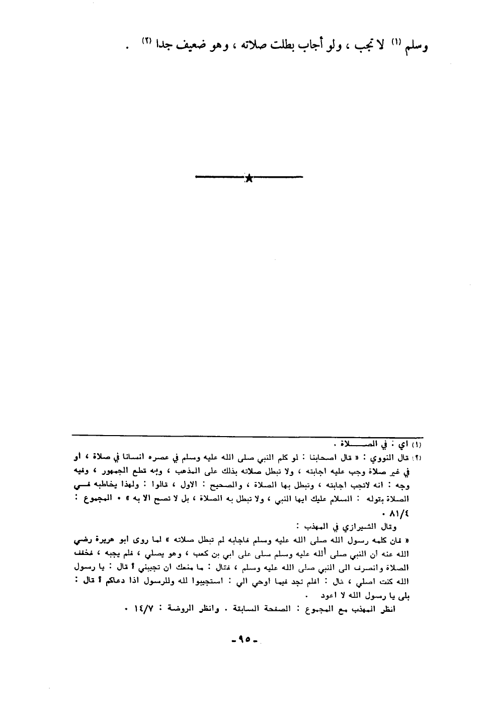 وَسلم لَا تجب وَلَو أجَاب بطلت صلَاته وَهُوَ ضَعِيف جدا