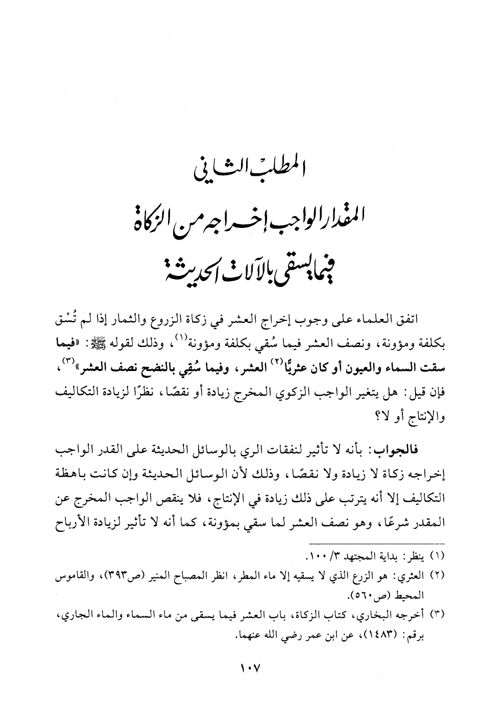 المطلبْ الثاني المقدار الواجب إخراجه من الزكاة فيما يسقى بالآلات الحديثة