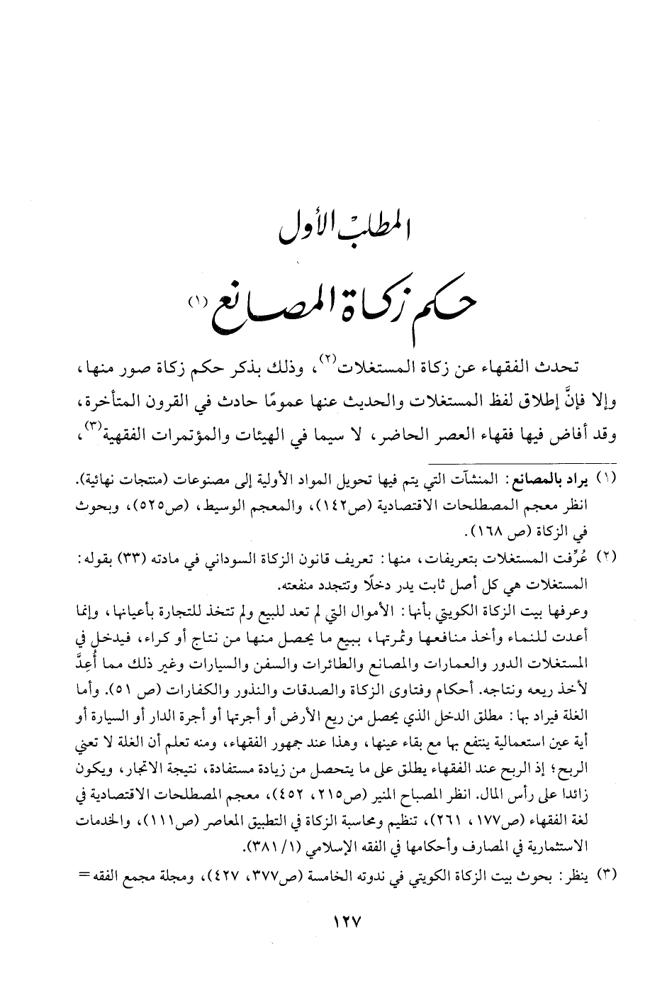 (¬1) يراد بالمصانع: المنشآت التي يتم فيها تحويل المواد الأولية إلى مصنوعات (منتجات نهائية). انظر معجم المصطلحات الاقتصادية (ص 142)، والمعجم الوسيط، (ص 525)، وبحوث في الزكاة (ص 168).