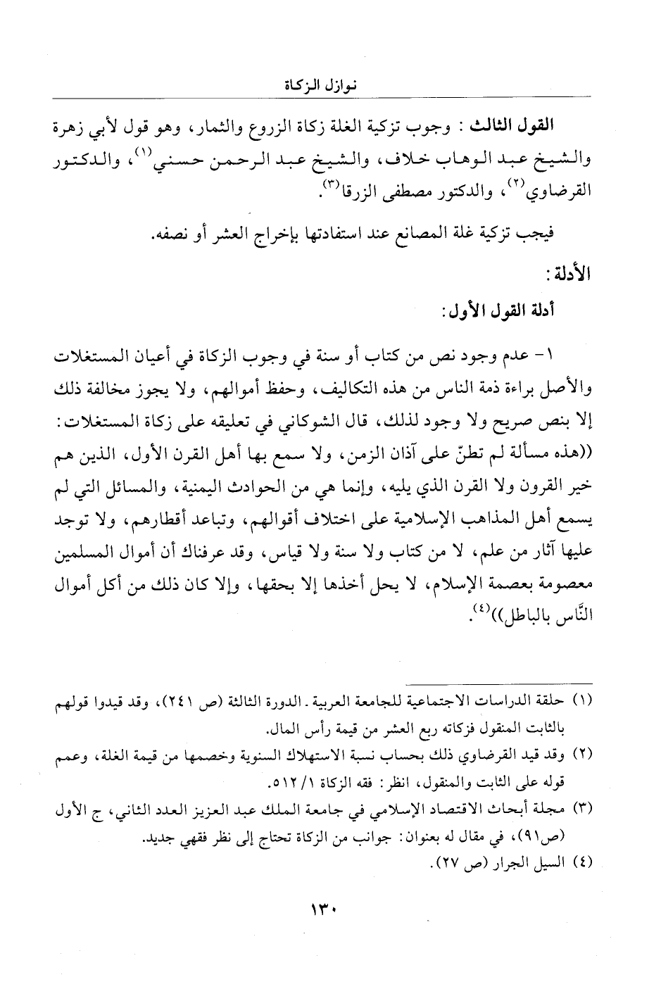 (¬3) مجلة أبحاث الاقتصاد الإسلامي في جامعة الملك عبد العزيز العدد الثاني، ج الأول (ص 91)، في مقال له بعنوان: جوانب من الزكاة تحتاج إلى نظر فقهي جديد.