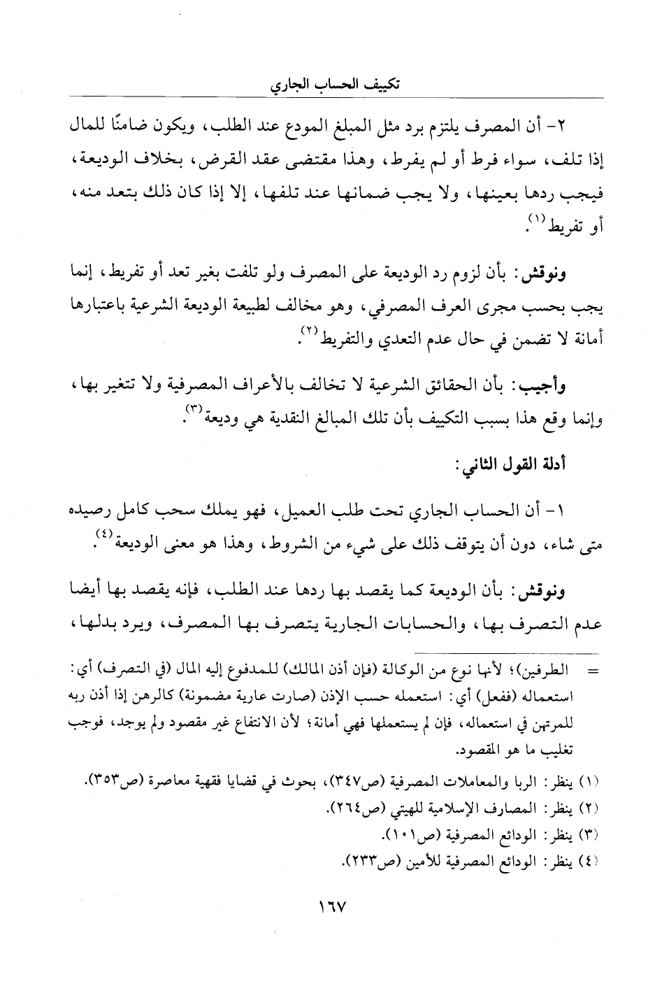(¬4) ينظر: الودائع المصرفية للأمين (ص 233).