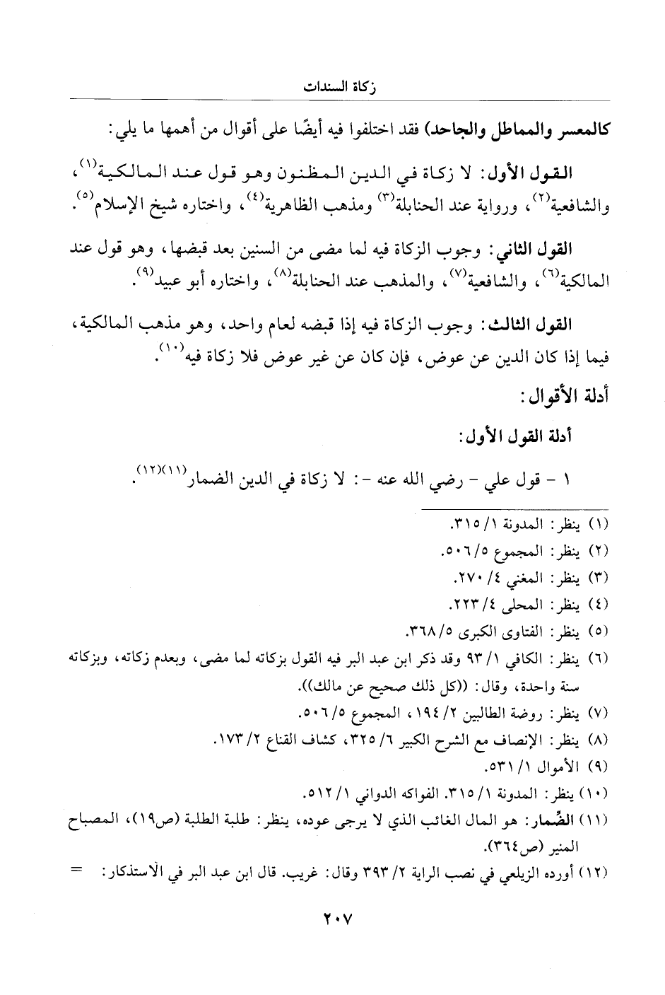 (¬11) الضِّمار: هو المال الغائب الذي لا يرجى عوده، ينظر: طلبة الطلبة (ص 19)، المصباح المنير (ص 364).
