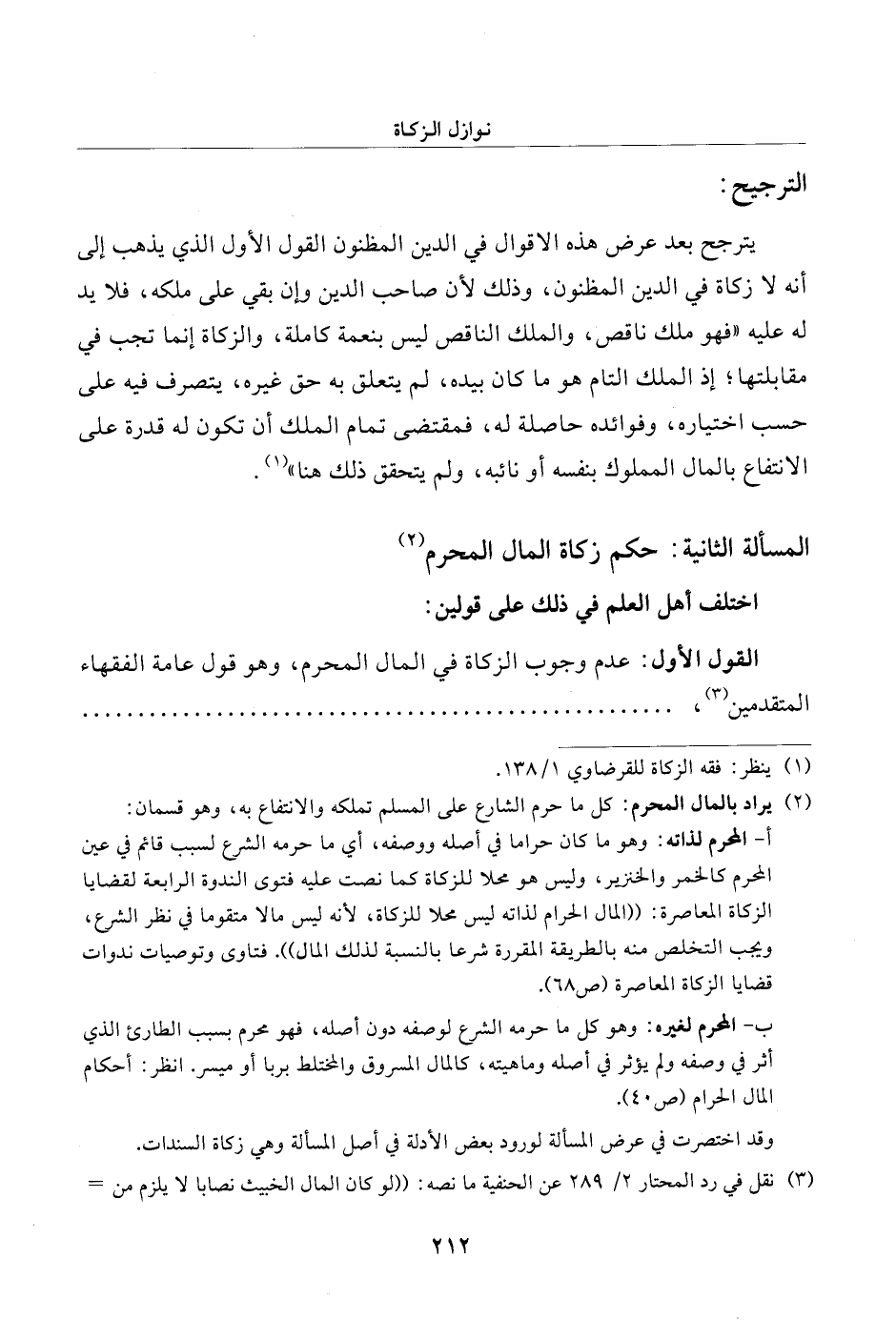 المسألة الثانية: حكم زكاة المال المحرم (¬2)