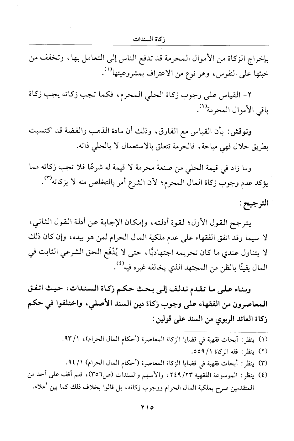 (¬4) ينظر: الموسوعة الفقهية 23/ 249، والأسهم والسندات (ص 356)، فلم أقف على أحد من المتقدمين صرح بملكية المال الحرام ووجوب زكاته، بل قالوا بخلاف ذلك كما بين أعلاه.