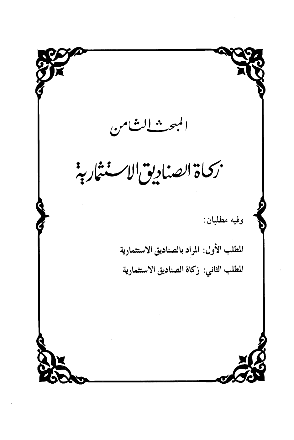 المطلب الثاني: زكاة الصناديق الاستثمارية