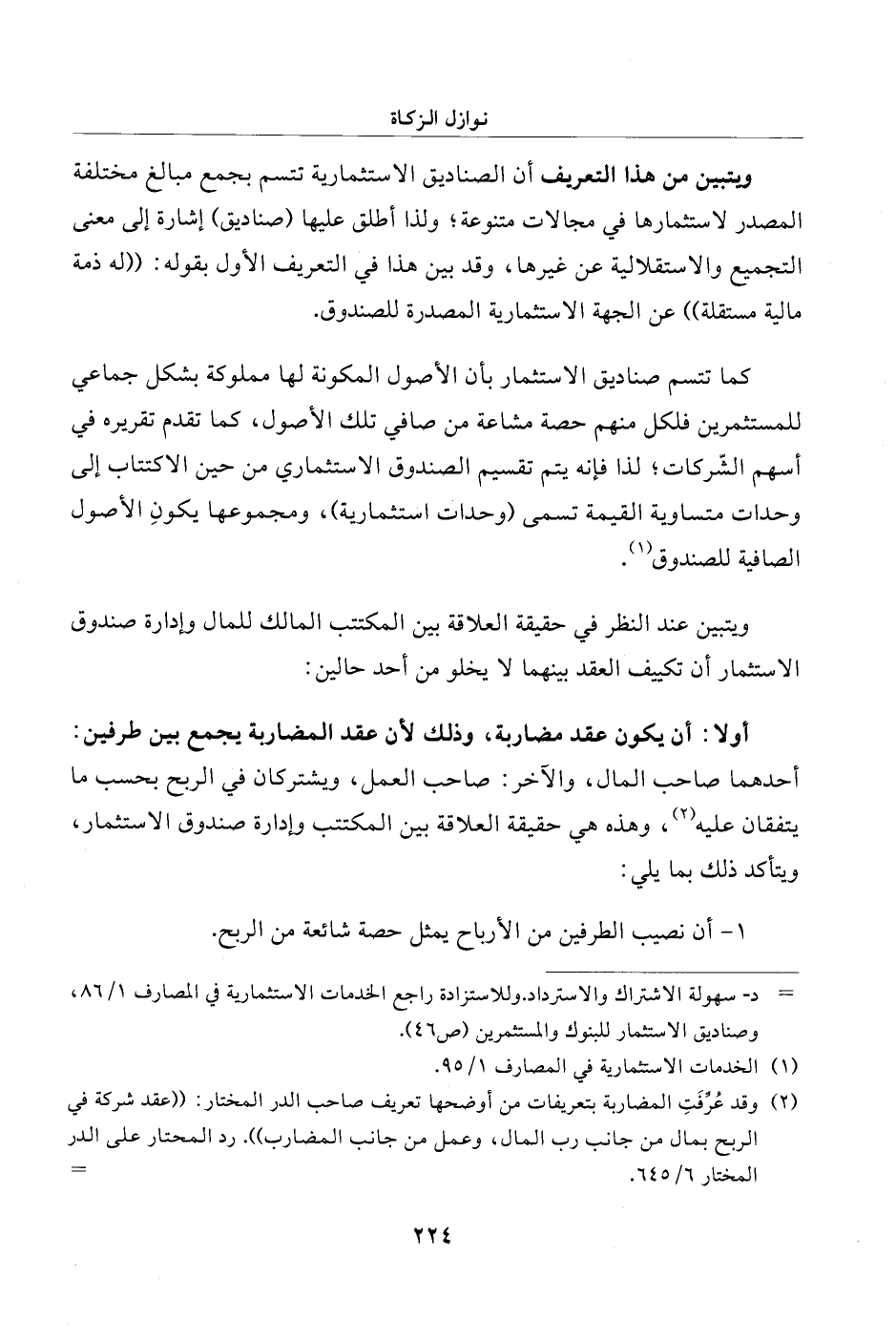 أولا: أن يكون عقد مضاربة، وذلك لأن عقد المضاربة يجمع بين طرفين: أحدهما صاحب المال، والآخر: صاحب العمل، ويشتركان في الربح بحسب ما يتفقان عليه (¬2)، وهذه هي حقيقة العلاقة بين المكتتب وإدارة صندوق الاستثمار، ويتأكد ذلك بما يلي: