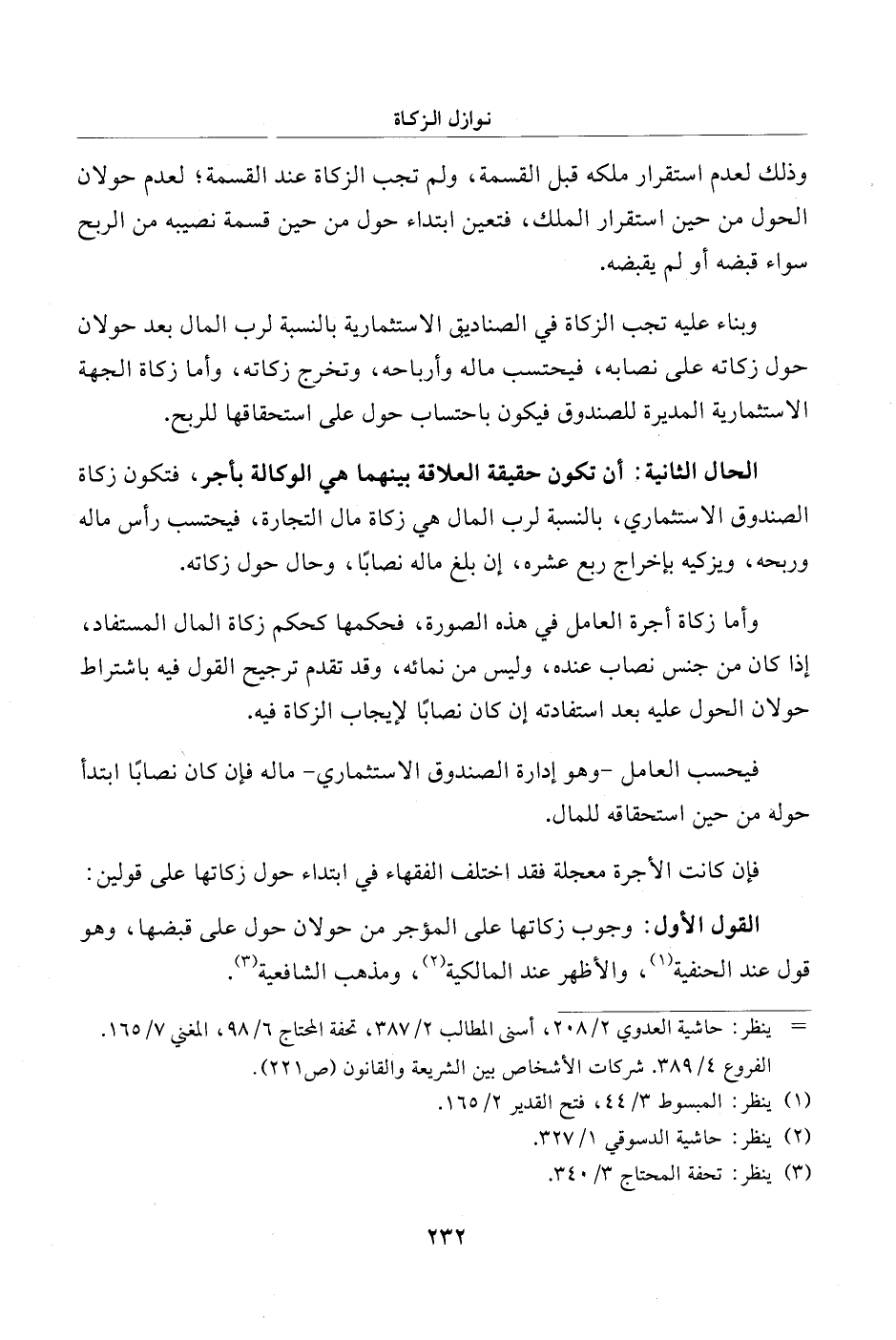 فيحسب العامل -وهو إدارة الصندوق الاستثماري- ماله فإن كان نصابًا ابتدأ حوله من حين استحقاقه للمال.
