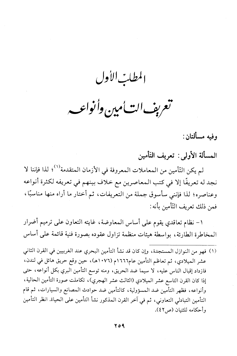 المسألة الأولى: تعريف التّأمين