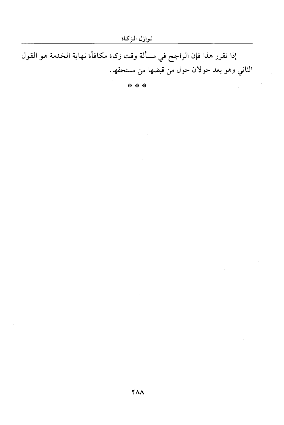 إذا تقرر هذا فإن الراجح في مسألة وقت زكاة مكافأة نهاية الخدمة هو القول الثاني وهو بعد حولان حول من قبضها من مستحقها.