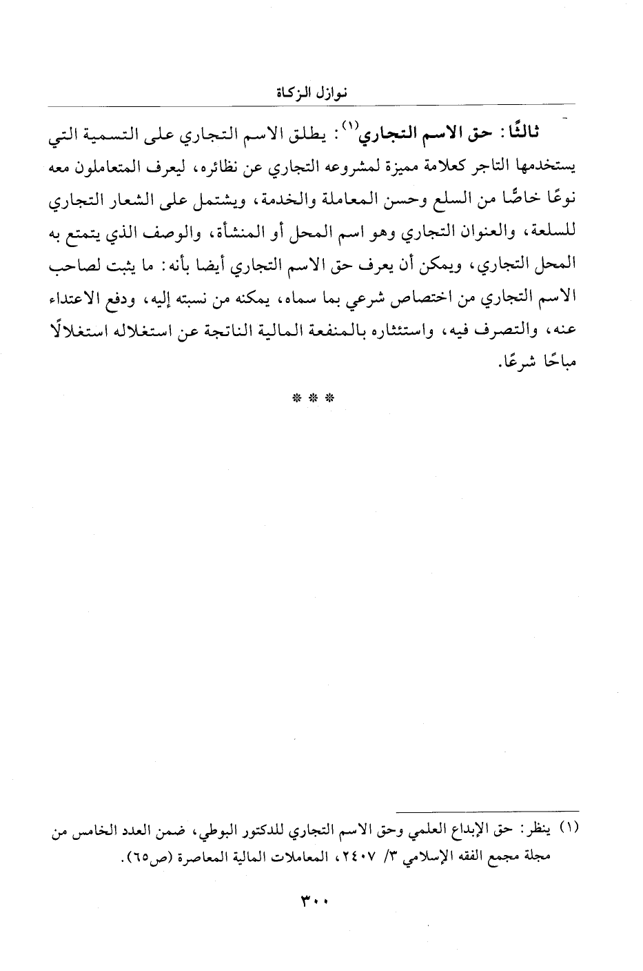 (¬1) ينظر: حق الإبداع العلمي وحق الاسم التجاري للدكتور البوطي، ضمن العدد الخامس من مجلة مجمع الفقه الإسلامي 3/ 2407، المعاملات المالية المعاصرة (ص 65).