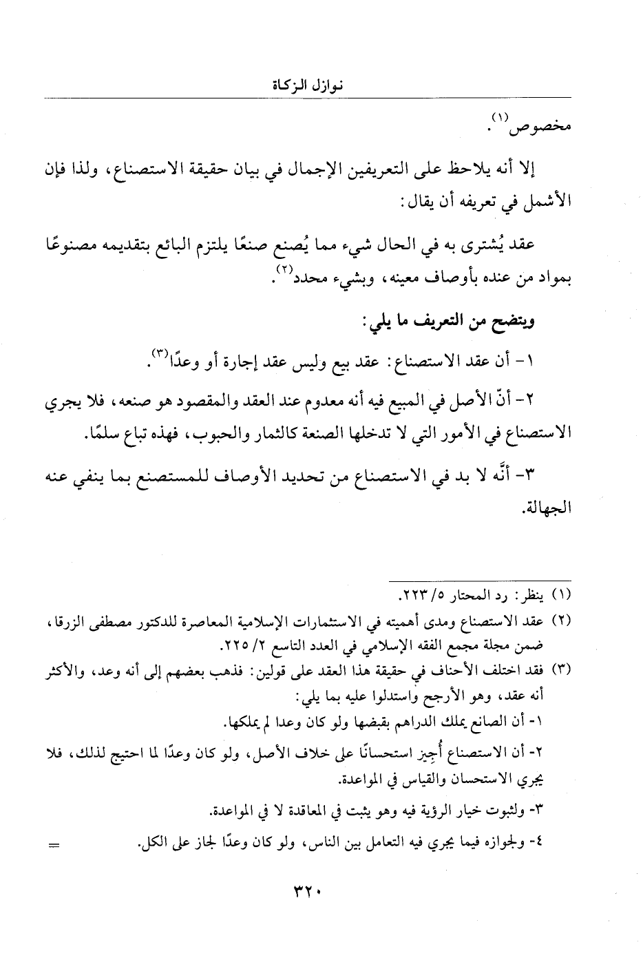 (¬2) عقد الاستصناع ومدى أهميته في الاستثمارات الإسلامية المعاصرة للدكتور مصطفى الزرقا، ضمن مجلة مجمع الفقه الإسلامي في العدد التاسع 2/ 225.