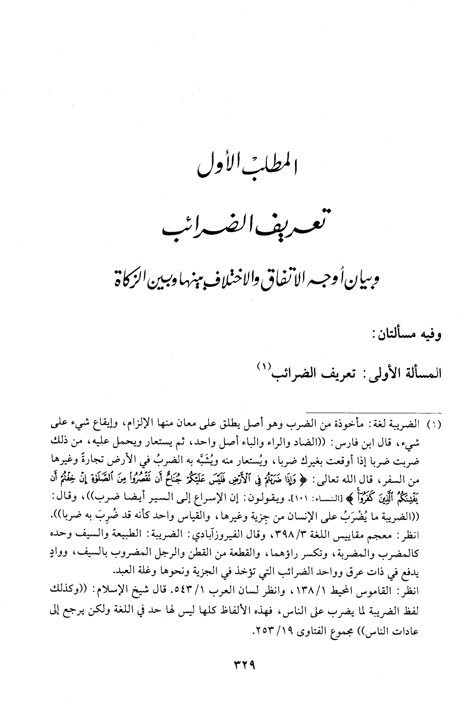 المطلبْ الأول تعريف الضرائب وبيان أوجه الاتفاق والاختلاف بينها وبين الزكاة