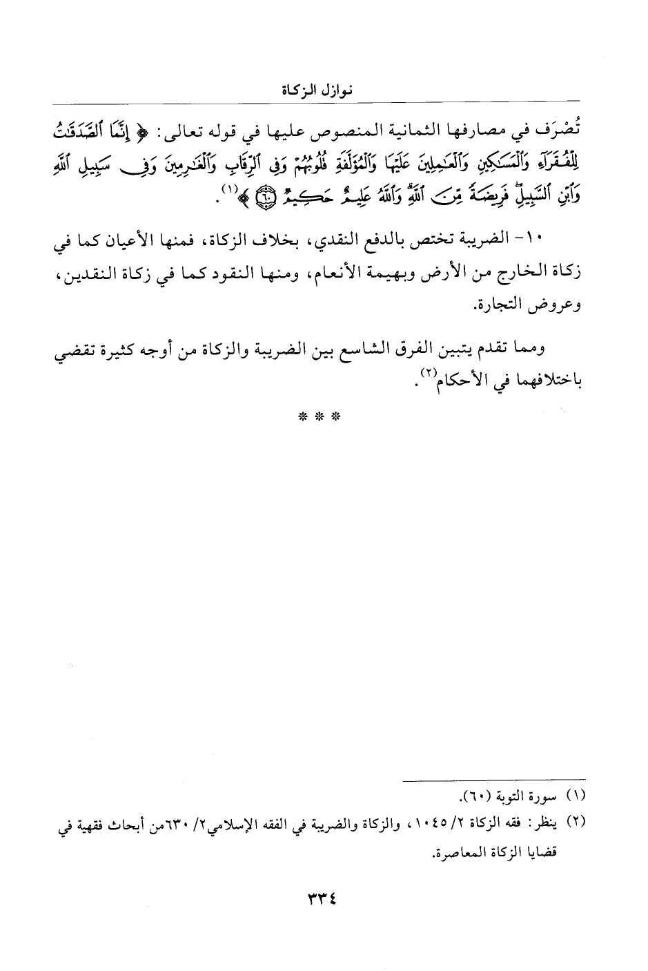 ومما تقدم يتبين الفرق الشاسع بين الضريبة والزكاة من أوجه كثيرة تقضي باختلافهما في الأحكام (¬2).