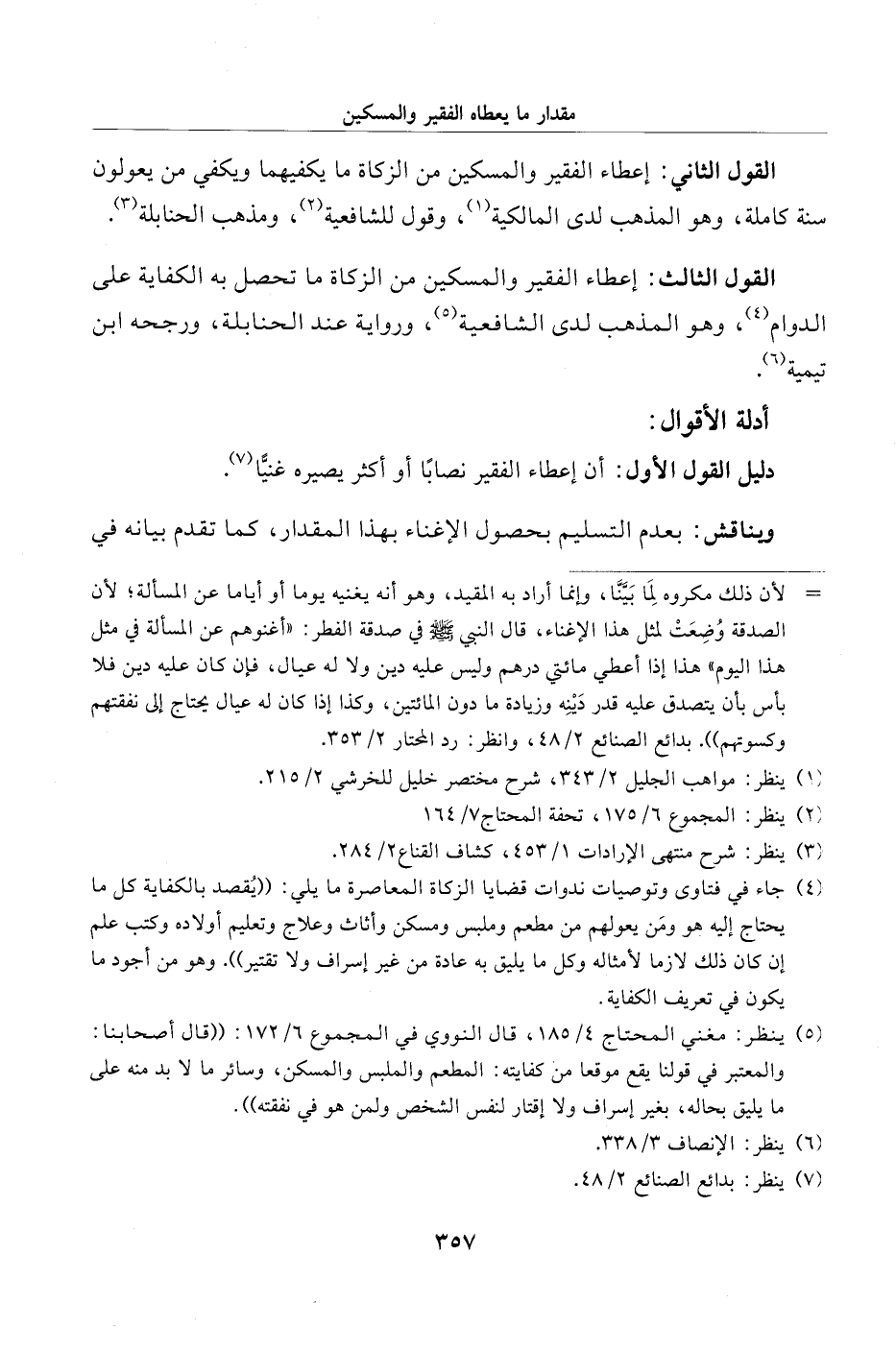 القول الثالث: إعطاء الفقير والمسكين من الزكاة ما تحصل به الكفاية على الدوام (¬4)، وهو المذهب لدى الشافعية (¬5)، ورواية عند الحنابلة، ورجحه ابن تيمية (¬6).