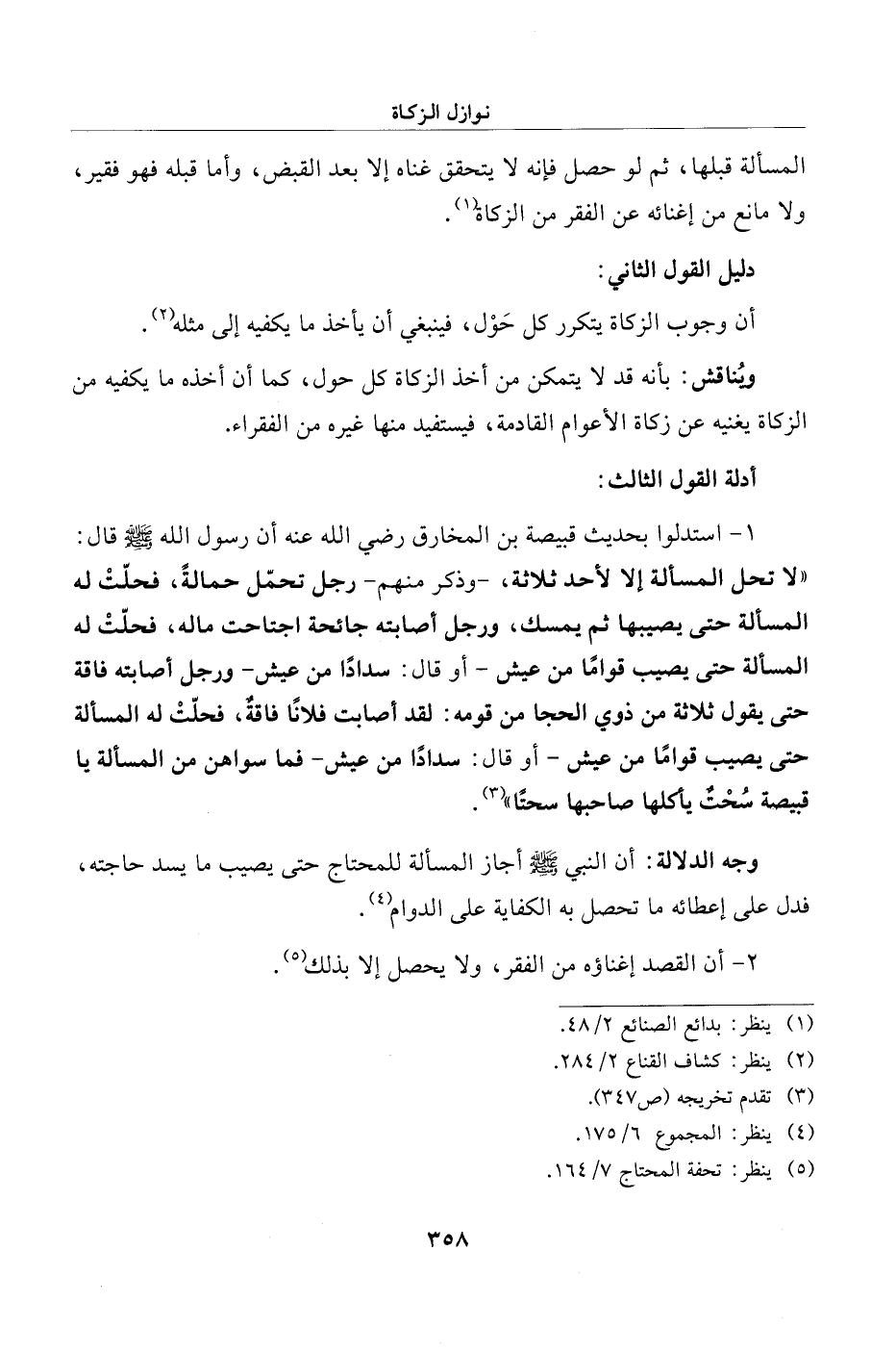 وجه الدلالة: أن النبي - صلى الله عليه وسلم - أجاز المسألة للمحتاج حتى يصيب ما يسد حاجته، فدل على إعطائه ما تحصل به الكفاية على الدوام (¬4).